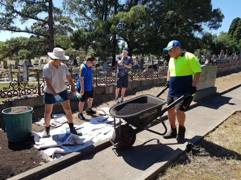 This perennial flower garden is a memorial to the Sisters of the Good Shepherd buried together here. Started in September 2017 as a collaboration between the Boroondara Cemetery Trust, Kew Neighbourhood Learning Centre, Burke and Beyond, Michael Tanner, Rachel Stephenson, Su Laird, and Helen Page and continues in 2025. This project workes with young adults to develop confidence and skills in basic horticulture, winning a cemetery industry award for innovation in 2018.