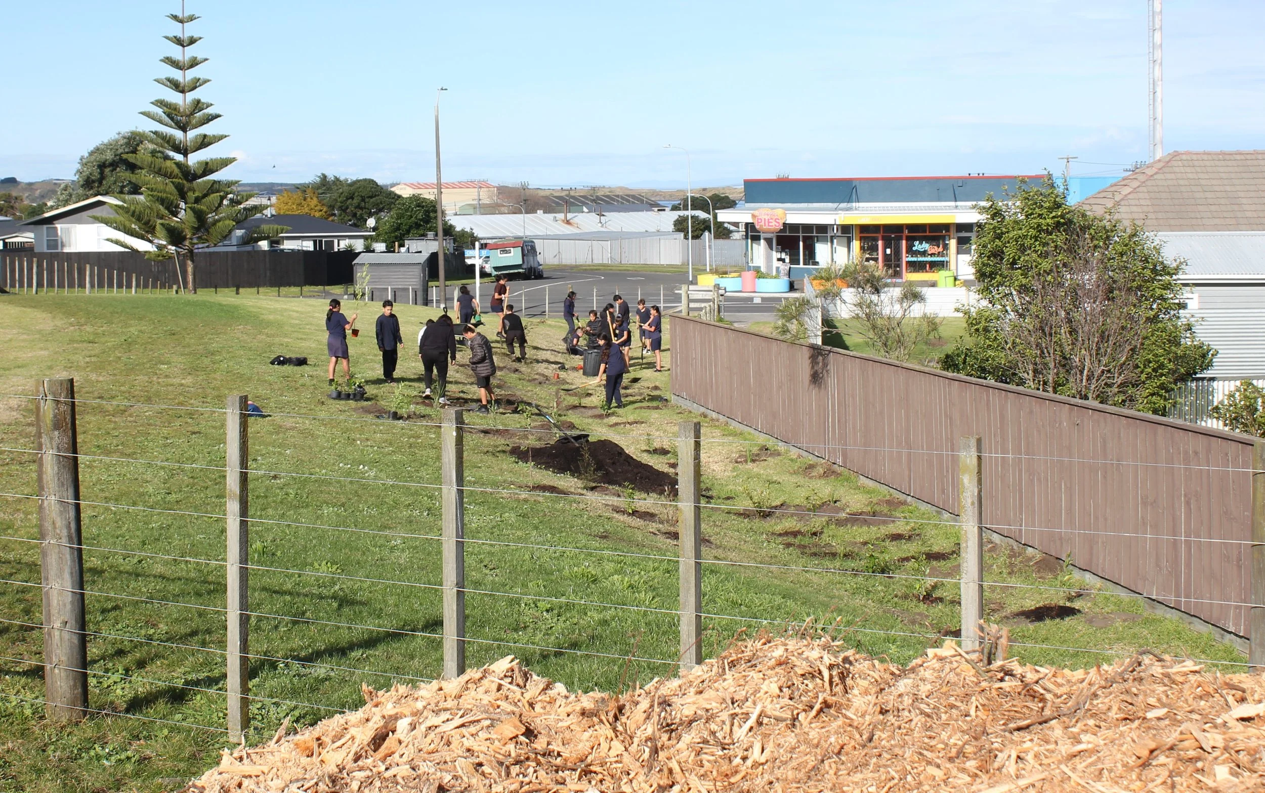 Continuing on from the adjacent Te Pae Maharahara memorial garden these native trees were added to extend habitat and restore the gully, providing shade and shelter from sun and high coastal winds. Works began June 2022