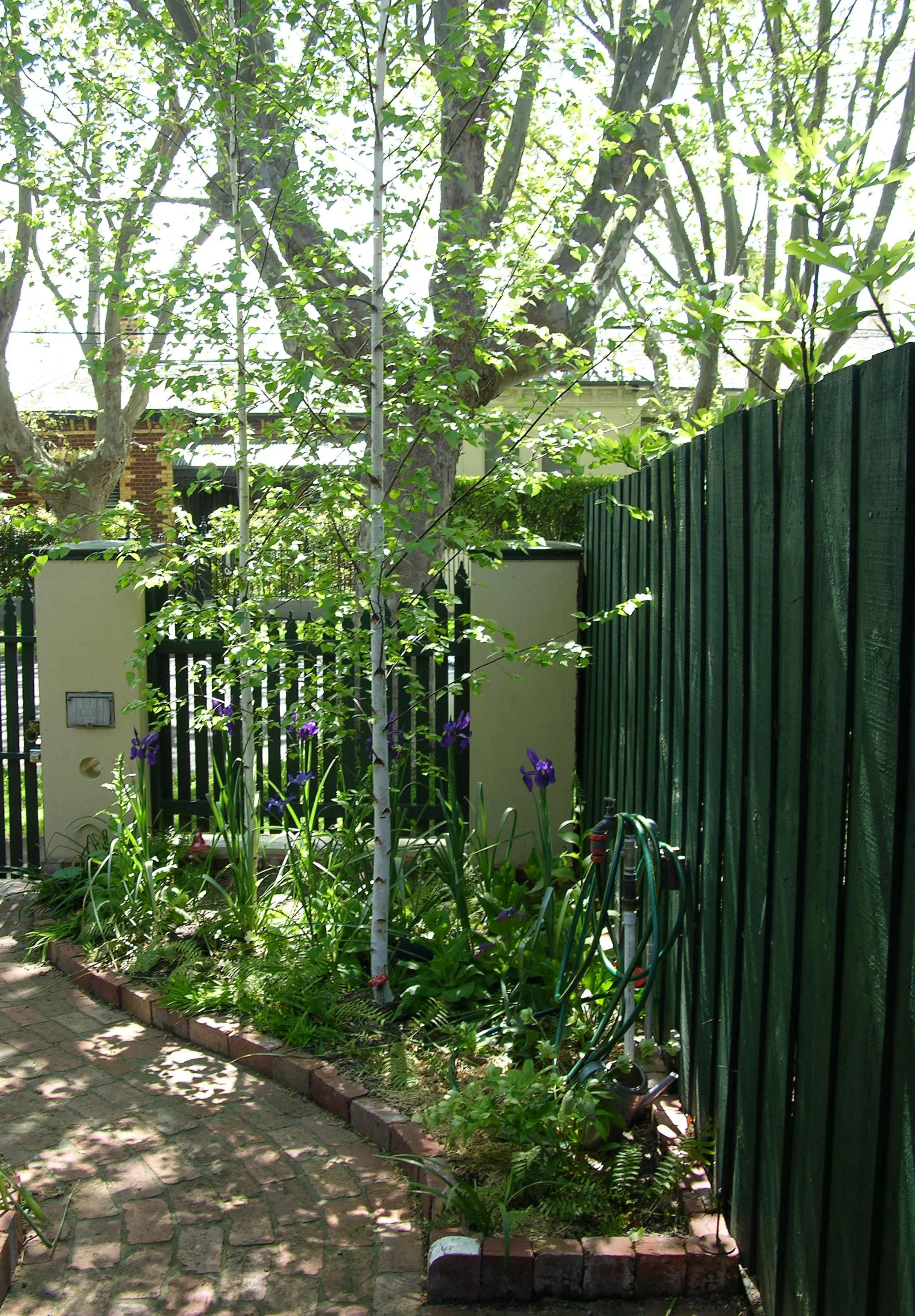 Bricks to match the Victorian terrace house were used. raising the soil level with compost and adding Fescue turf and pop-up irrigation.