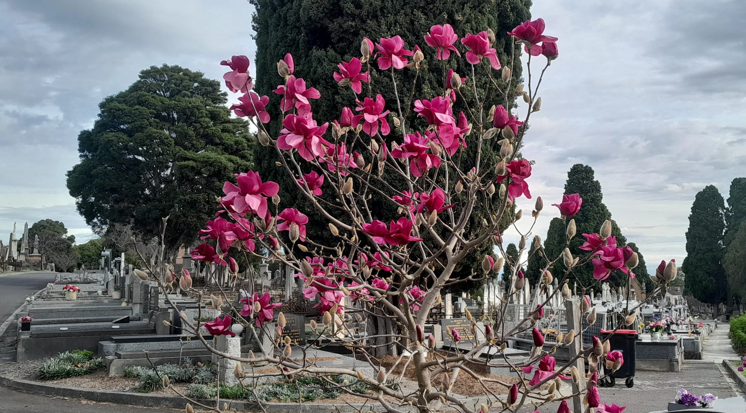 From 2017 - late 2018 Rachel Stephenson worked with Michael Tanner, Helen Page, Su Laird, and many volunteers to return the grounds to the original Botanical Cemetery vision, adding heat-tolerant, flowering trees to ensure succession as well as mass plantings of drought-tolerant perennials, grasses and Succulents. Mulch and groundcovers were introduced to reduce maintenance and soil evaporation, and reliance on chemical management. Returning to work with the new team in 2025 Rachel is continuing with planting areas of perennials and native/endemic species.
